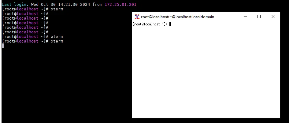 我们借助MobaXterm程序,它默认集成了XMing二进制,我们通过其ssh登录的服务器,可以直接启动X11的程序,这里以xterm为例,如下: